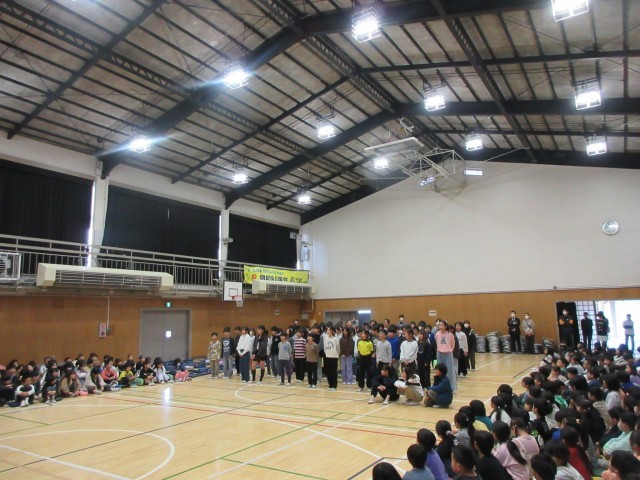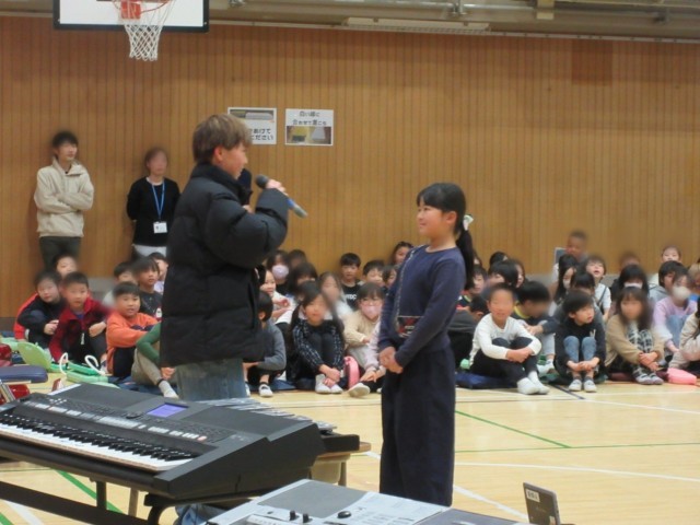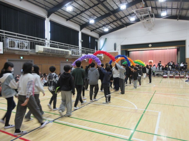 2月最後の登校日。今日は、「6年生を送る会」を行いました。4、5年生の代表委員会が計画をし、各学年からは感謝と励ましの演奏やメッセージ、クイズや6年生と真剣勝負など、温かくユーモアのある感謝の思いを伝えました。