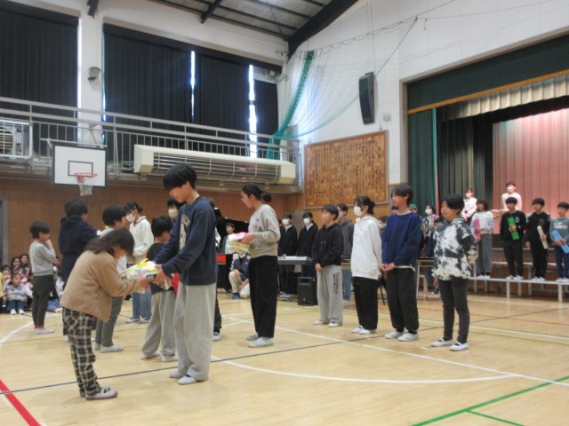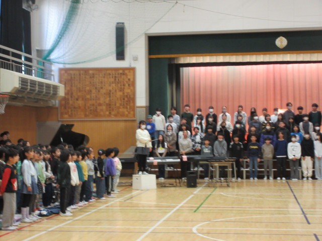 最後に、全体合唱「大切なもの」を体育館いっぱいに歌い、温かい雰囲気き包まれた会のお開きとなりました。6年生の表情がいつも以上に緩んでいたような…互いの成長を感じた会となりました。