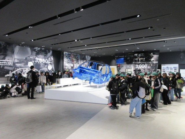 3つのグループに分かれ、ショールーム、電気自動車の組立や検査工程、専用の埠頭を見学しました。工場の中は、セクション毎に、人力で行うところと機械が行うところを分けていることや安全性を第一に車が造られていることがよく分かりました。