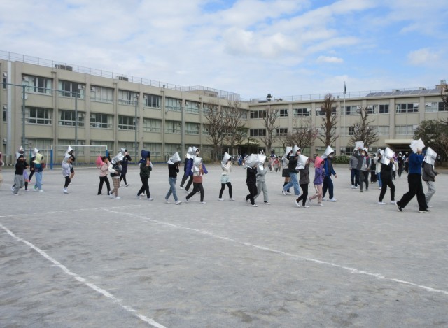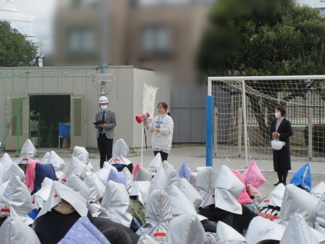 今年度最後の避難訓練は、近隣の火災を想定して行いました。1年間の成果が避難完了の時間の短縮にもつながっていました。「自分の命は自分で守る」それが、人の命を守ることにつながります。いつ、どんな時に起きても、よりよい避難行動が取れるようにしていきましょう。(4、5枚目)