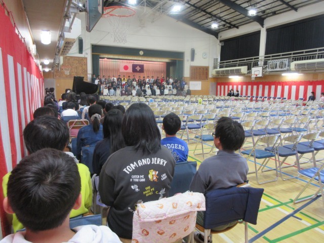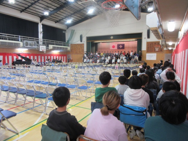 今日は、1年生から4年生までが午前授業です。5時間目に多くの先生たちが見守る中で、予行練習を行いました。