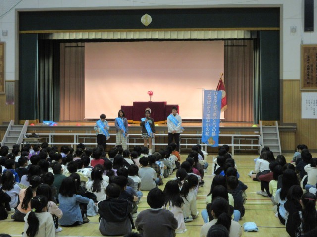 「ひろげよう あいさつの輪 つなげよう志五小の和」