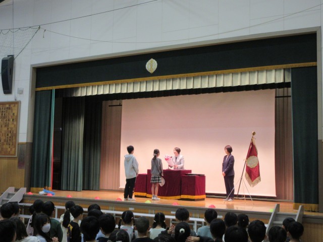児童代表の言葉は5年生です。今年度の経験を生かし、最高学年に向けての決意を全校児童の前で話しました。力強く頼もしい姿でした。