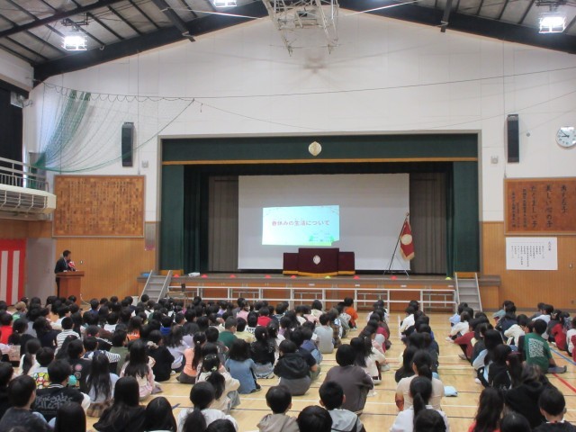 修了式後には、生活指導主任の先生より、春休みの安全な生活についてお話がありました。