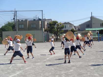 5年生は、集団行動で、1曲目のスタートの片膝つく姿勢や行進を練習していました。手や足の角度がきれいになってきました。また、千手観音もいいです。昨日よりずっと美しく揃ってきています。