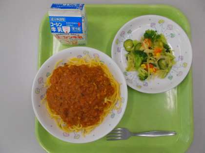 今日は、ミートソースのスパゲッティでした。