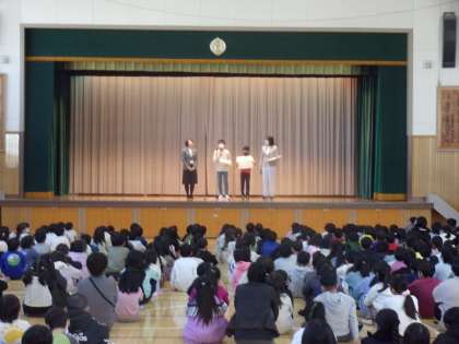 終業式の後に、「調べる学習コンクール」と「読書感想文」の表彰をしました。2人から、どんな取組をしたのか、どういうことが分かったのか、どういう気持ちの変容があったのか・・・と、インタビュー形式で答えてもらいました。自分の考えをしっかりともち、端的に答えられることはさすがです。