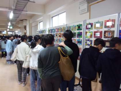 体育館での発表会が終わり、廊下の掲示物などを見ながら教室へ。9年生の教室に入らせていただいて、発表会の感想などを書いています。中学校生活を身近に体験できる、大変貴重な機会となりました。