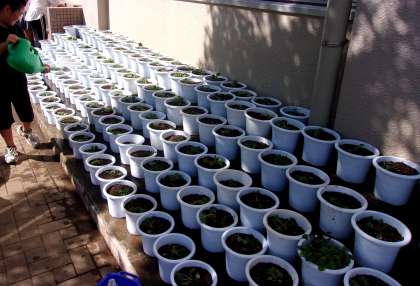 「もう1鉢植え替えるぞー!」とやる気満々の子供たち。全部で約200鉢植え替えることができました。