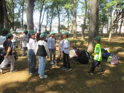 次は、2組が計画した「猛獣狩りゲーム」です。生き物の文字数と同じ人数でグループを作りますが、いくつかの条件と工夫がありました。男女が混ざることやいろいろなクラスの人が入ること、グループになったあとに「思い出を語る」というものです。
