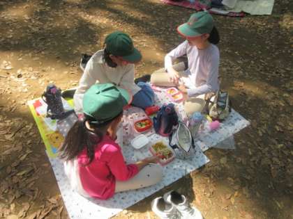 2クラスの学年遊びが終わって、11:30に早めの昼食です。2つの遊びを終えて、おなかがペコペコの子供たちでした。