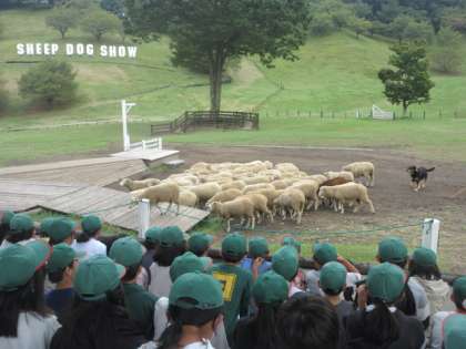 牧羊犬が、犬笛を聞き分けて、羊たちを一箇所に集めたり、次の行動を示していきます。時々、言うことを聞かない羊がいて、牧羊犬の指示を聞かずに、逆方向に逃げることも・・・。思わずくすっと笑ってしまいました。