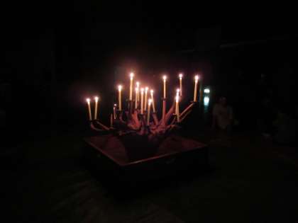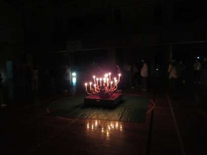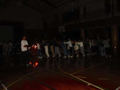 体育館でキャンドルファイヤーを行った様子です。