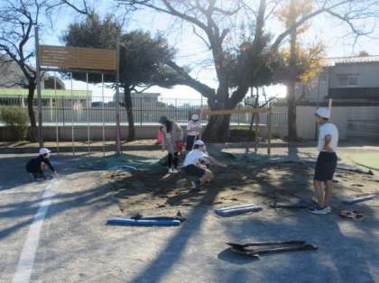 また、学習をより深めていけるように、2つのグループに分けて学習しています。もう半分の児童は、縄跳びの様々な技に挑戦したり、友達と跳び方を工夫したりして楽しく活動していました。