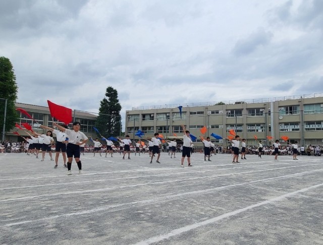 4色のフラッグを使い、風を切る音と隊形変化の面白さを表現していきます。子供たちのきりりとした眼差しが印象的でした。