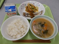・ごはん・ししゃもの南蛮焼き・カリカリ油揚げのサラダ・五目汁・牛乳【ししゃもの南...