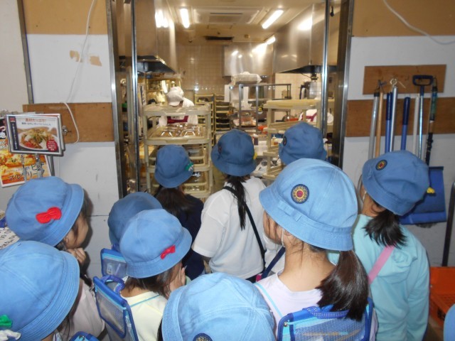 商品が売られている所や実際に調理をしているバックヤードなどを見学させていただきました。普段見ることのできない所を見学することができ、子どもたちも目を輝かせていました。