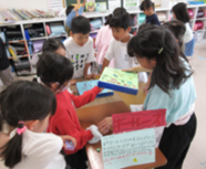 2年生が1年生を招待しておもちゃランドを開きました。作るときから、1年生が楽しめるようにと考えながら、おもちゃ作りに励み、ルール設定も考えていました。当日は、それぞれのお店ごとに作ったおもちゃのやり方を優しく教えたり、声を掛けたりする姿が見られました。1年生が楽しむだけでなく「喜んでくれてよかった。」や「ルールの説明がわかりやすくできた。」などの声が聞こえ、2年生にとっても大満足の活動になりました。