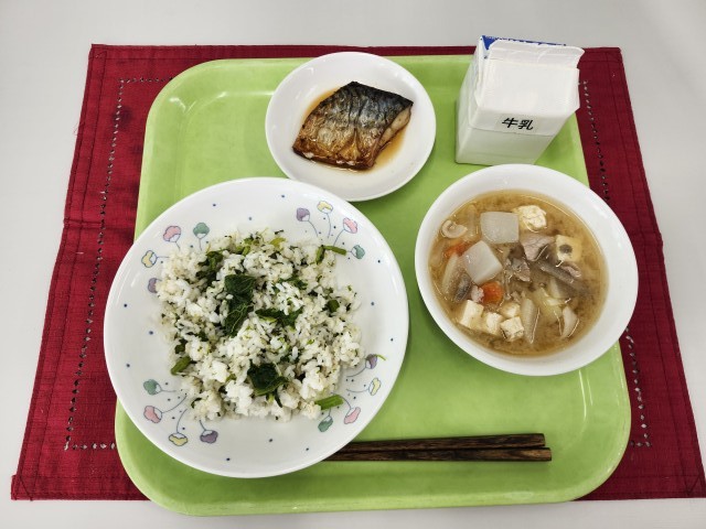 ごはんには、季節の青菜として、菜の花を使用しました。
