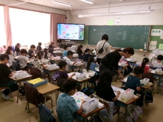 この日は画用紙の枠の中に好きな色を塗っていきました。