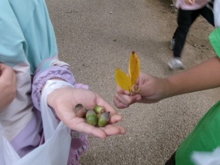 どんぐりや木の実、葉っぱなどを見つけて、季節の変化を感じることができました。