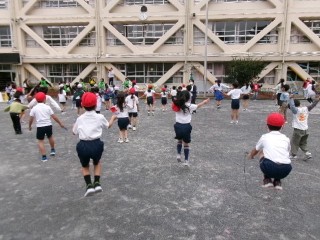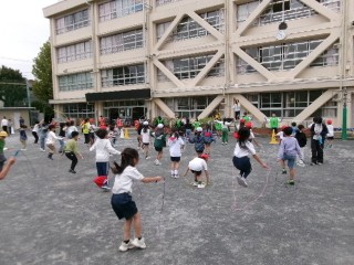 体力向上の取組として、中休みの終わりの5分をなわとびタイムとして実施しています。