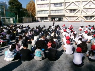 今日の避難訓練は、校内での火災発生時に放送機器が使えない場面を想定しての訓練でした。