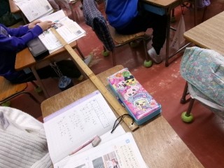 この日は、教室内の黒板や本棚などについて、事前に長さを予想した後、1mものさしを使って長さを測りました。