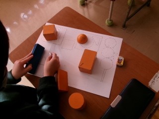 いろいろな形に触れ親しむかたち遊びを通して、形に対する豊かな感覚を育んでいきます。