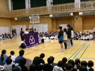 1年生からはオリジナルペンダントのプレゼント、2年生から5年生は、それぞれの学年で考えた出し物を感謝を込めて披露しました。