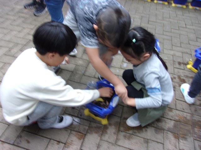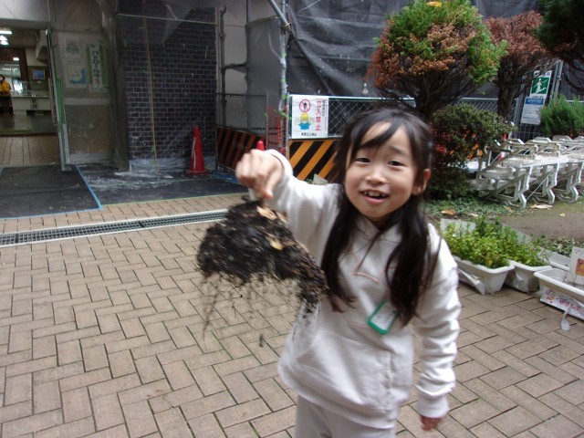 また、チューリップを植えるために、あさがおの根っこを抜きました。巨大な根っこに大興奮でした!