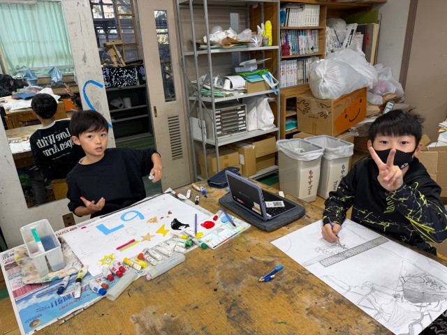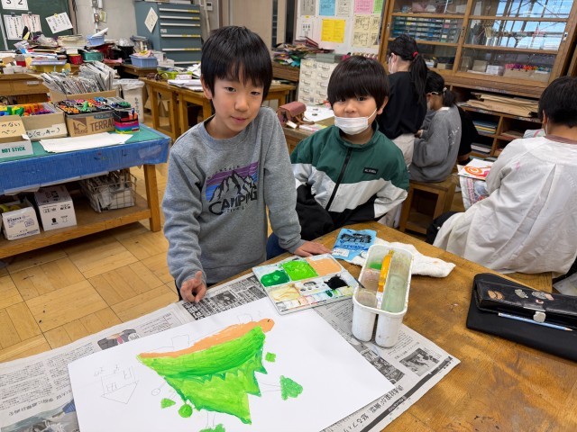 12月4日(木)4年生 図工がんばってます! 公開日 2025/12/04 更新日 2025/12/04 できごと 4年生の図工では、へんてこ山の物語という題名で、山の作品を作っています。見たこともないへんてこな山を考えて、その山でどんなことが起こるのかを想像して描きます。子どもたちは豊かな発想で、ステキな作品に仕上げていました。できた作品を「見て、見て~」と声をかけてくれ、うれしかったです。中台ピンク 4年生