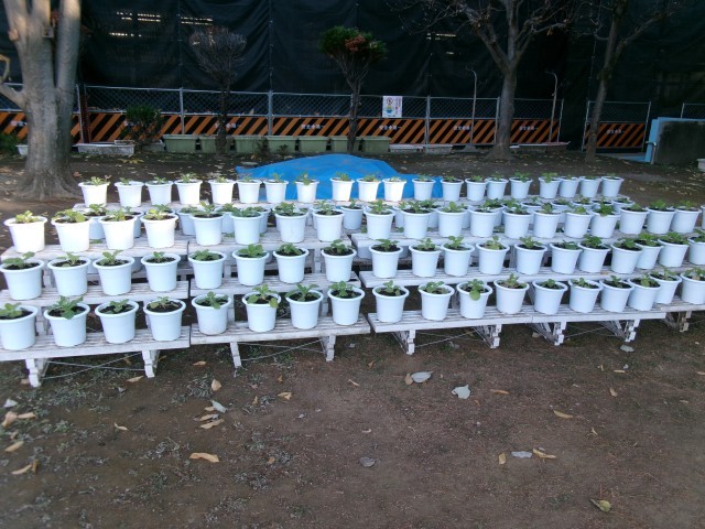 今年も、サクラソウが中台小に運ばれてきて、5年生がお世話を始めました。毎年、種を取って、苗ができるまで地域の方が大切に育ててくださり、苗が大きくなると中台小の校庭で栽培します。今年は、大規模外壁工事のため、いつもの場所の日当たりが悪く、5年生が日当たりのいい場所へ移動させてくれました。寒い冬も、たっぷりの日差しを浴びて大きく育つように、5年生水やりをお願いします。