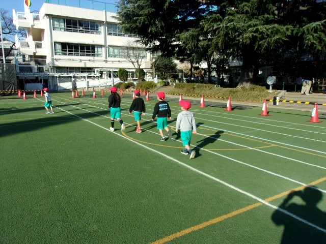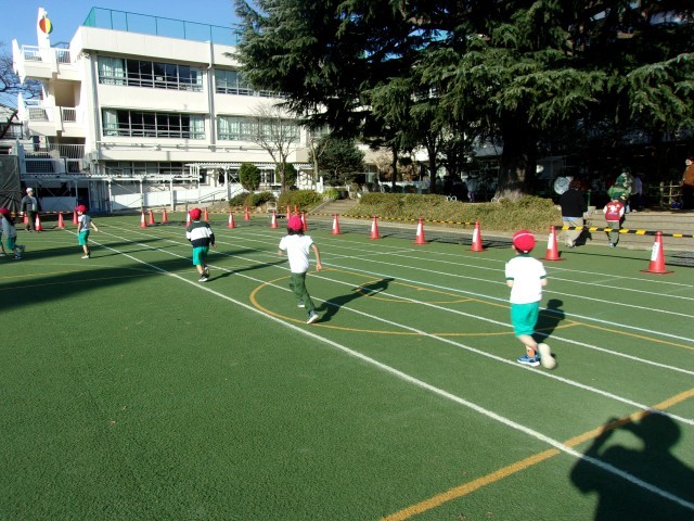 5・6年生の走る姿を見てやる気満々の1年生。体育での持久走をとっても頑張りました。
