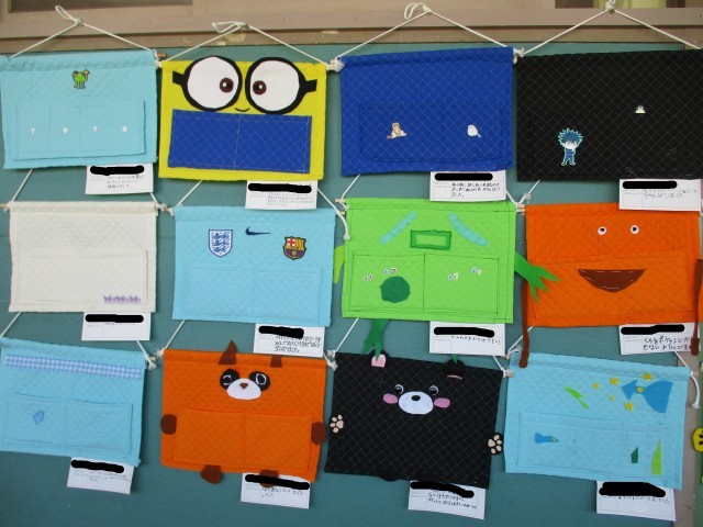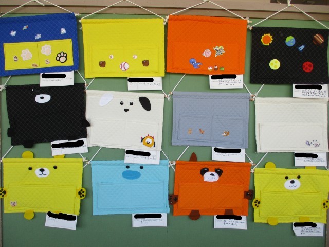 5年生は2学期の終わりから家庭科の学習でウォールポケットを製作していました。