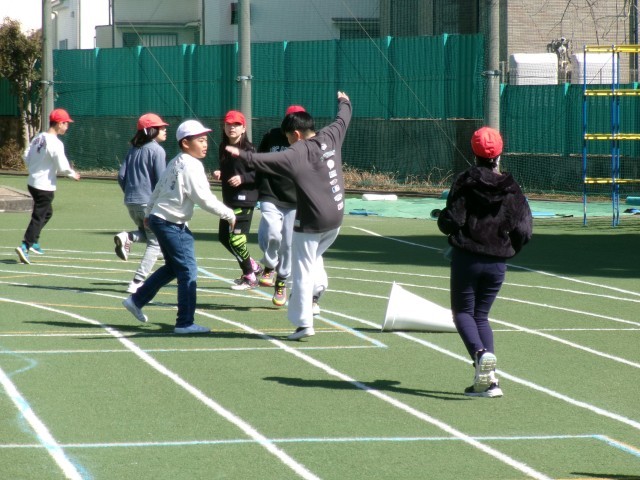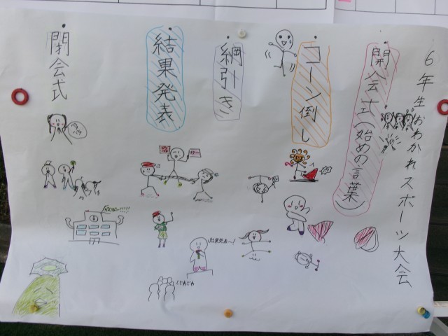 今日は、5,6年生のお別れスポーツ大会でした。5年生が考えた「カラーコーン倒しゲーム」。ケンケンで相手チームのコーンを倒しに行くゲームにみんな大ハッスル!です。6年生に負けないぞ!と5年生も力いっぱい頑張っていました。