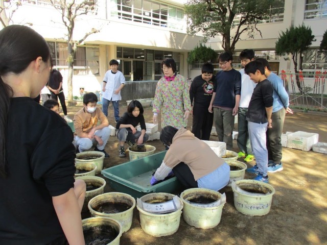 蓮の分根では、みんな泥だらけになりながらも、土を入れ替えたり、根を取り出したりしました。
