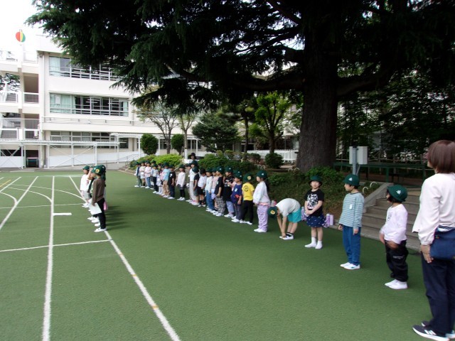 1年生では、2クラス合同で元気いっぱい外で遊ぶ活動を行いました。