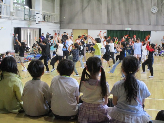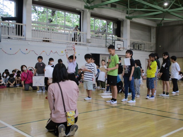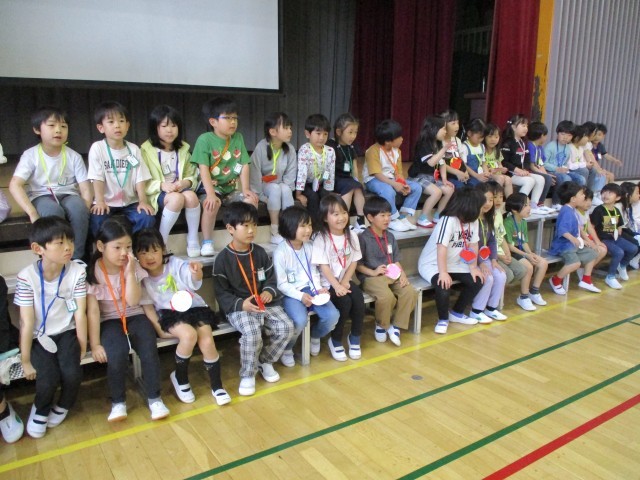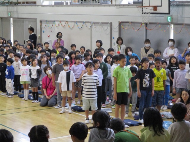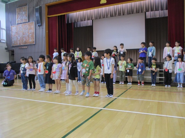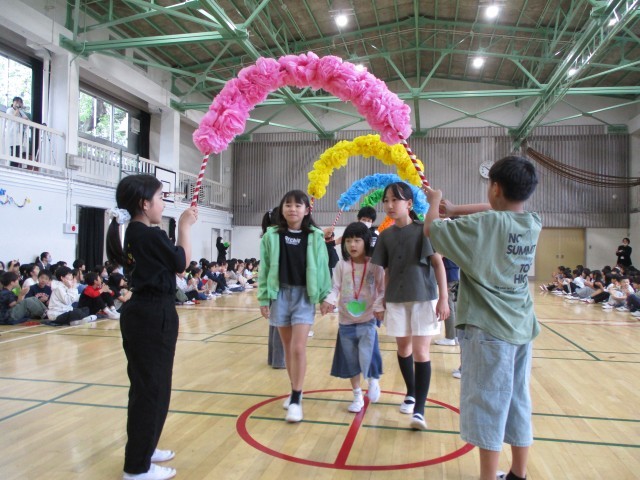 全校児童が揃い、1年生を迎える会を開催しました。上級生の手作りプレゼントやクイズを楽しみ、1年生は「これから楽しみ!」と目を輝かせていました。優しい上級生に見守られ、安心した様子で学校の一員となった1年生。これからの成長がますます楽しみです。