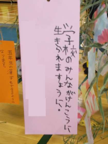 七夕交流集会2 公開日 2022/07/08 更新日 2022/07/08 できごと 7月7日、4年生と五組で七夕交流集会が行われました。 短冊に書いた願い事を発表し合い、七夕にちなんだクイズをだしあって、楽しい時間と空間、心を共有しました。