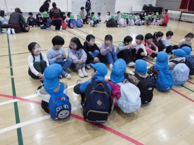 近隣の保育園との交流で、4月から新一年生になる保育園児を1年生が迎え入れました。