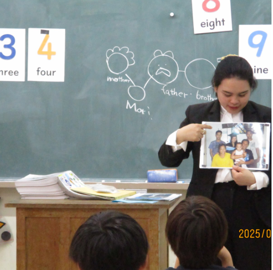 普段子どもたちは英語を話す機会がないので、外国語の時間はオールイングリッシュ(すべて英語)で授業を進めています。今日驚いたのは、私が予想していた以上にALTのミニ―先生の英語の質問に即座に英語で答える子どもたちの姿でした。こんなに自然に英語を話せるんだと驚きました。