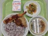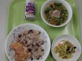 3月22日(水)の給食メニュー ・お赤飯 ・とりの唐揚げ ・のりおひたし...