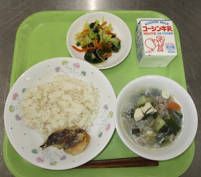 ごはん・めばるの西京みそ焼き・和風きのこサラダ・けんちん汁・牛乳