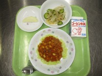 ビビンバ・春雨と豆腐のスープ・牛乳 野菜たっぷりの献立です。