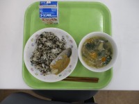 ごはん・ひじきふりかけ・鰆のみそだれかけ・根菜汁・牛乳 ふりかけは、味付けをした...