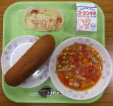 今日の献立 黒砂糖コッペパン 魚のパン粉焼き トマトとマカロニのスープ 牛乳 ...