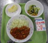 チリビーンズライス・ごぼうのパリパリサラダ・りんご・牛乳 チリビーンズは、1...