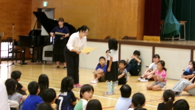 今日の全校朝会では、今週末に行われる新河岸ミュージカルに出演する児童が練習の成果を披露したり、消防写生会で入選した児童の表彰をしたりしました。新河岸ミュージカルのお披露目では、初めて大勢の人の前で歌うので、緊張している様子でしたが、振り付けがきれいにそろっていて練習の成果を感じることができました。11日の本番がとても楽しみです。