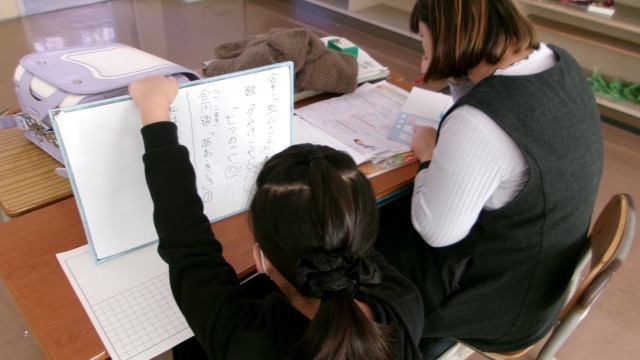 この時期、他校でも学習発表会や音楽会があります。他校から日本語学級に通級してくる子どもたちは、正しい日本語で感想を書く学習に取り組んでいます。書きたい材料を集め、内容を整理しながら、「まず」「つぎに」など順序を表す言葉を確認して文章にまとめていきます。どの子も一生懸命頑張っています。